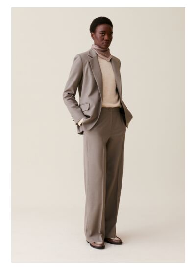 Quelle est la coupe de la veste tailleur croisée Claudie Pierlot ? La veste présente une coupe ajustée et structurée, idéale pour souligner la silhouette tout en offrant une allure élégante et moderne.