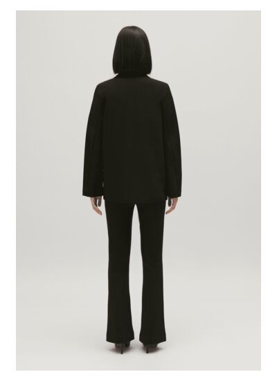 De quel matériau est composée cette veste noire ? Cette veste est conçue dans des matériaux de qualité, sélectionnés pour leur tenue et leur confort, assurant un tombé impeccable et une durabilité optimale.