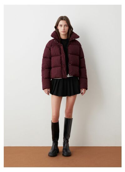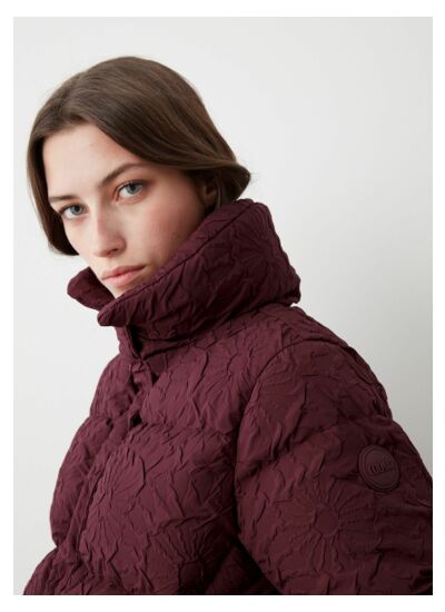 Veste pour femme réalisée en polyester hydrofuge et doux au toucher. Garnissage en duvet naturel. Ce modèle court au col haut et enveloppant présente un motif floral en trois dimensions. Fonctionnel et pratique, elle présente un matelassage large et régulier qui met en valeur le motif du tissu. Une pièce confortable et tendance pour affronter le froid avec style.