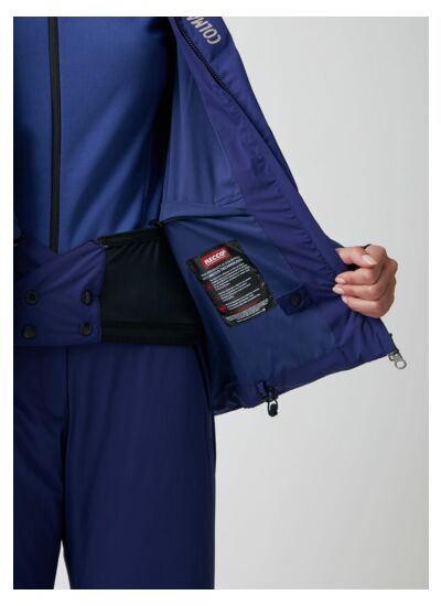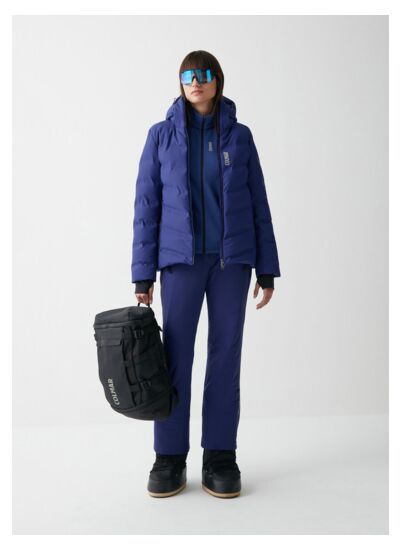 Veste de ski pour femme, réalisée en tissu 5 couches imperméable résistant à la pression d'une colonne d'eau de 20 000 mm et ayant un niveau de respirabilité de 10 000 g/m²/24h avec une construction en canaux, qui permet l'insertion du duvet sans coutures, gage de confort et de technicité de haut niveau. Appartenant à la catégorie extra warm, ce vêtement est extrêmement chaud et enveloppant. La doublure stretch en fibres de graphène assure une excellente rétention et dissipation de la chaleur. Le réflecteur Recco®, qui permet la localisation en cas d'avalanche, et le cache-cou sans coutures ne sont que quelques-uns des nombreux accessoires présents dans cette veste.