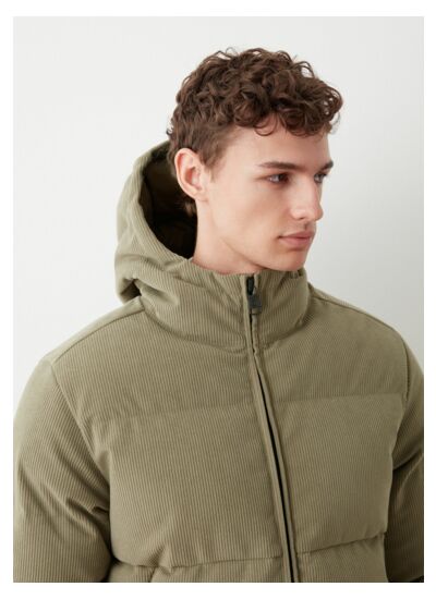 Veste homme avec une capuche fixe en velours côtelé de polyester doux avec traitement hydrofuge éco-durable et avec application d'une membrane sur l'envers qui garantit une imperméabilité égale à 10 000 mm de colonne d'eau et une respirabilité égale à 10 000 g/m2/24H. Une pièce tendance et de caractère, l'idéal pour affronter les rudes températures hivernales.