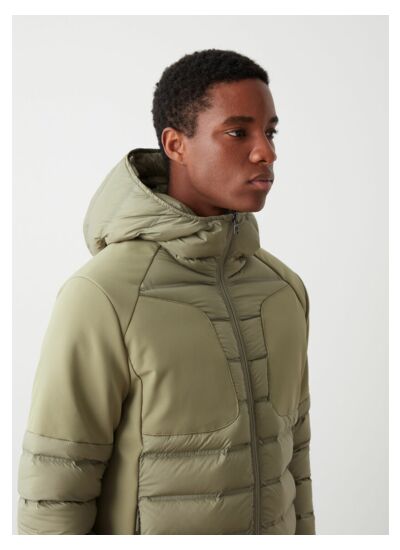 Veste homme matelassée avec capuche fixe en tissu tubulaire doux en polyamide semi-brillant au fini déperlant éco-durable et traitement imperméabilisant duvet. Garnissage en duvet naturel. Les empiècements en tissu stretch effet néoprène avec traitement hydrofuge donnent du peps à ce vêtement fonctionnel et pratique. Un look dynamique et futuriste qui souligne le regard de Colmar Originals tournée vers le futur.