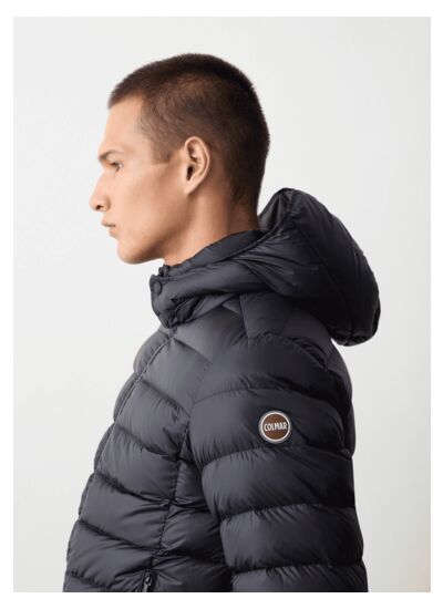 Veste pour homme avec capuche amovible, réalisée en tissu semi-brillant 100 % recyclé traité hydrofuge. Garnissage en duvet naturel. La régularité des matelassages, la doublure contrastée et le cordon de réglage dans le bas ne sont que quelques-uns des détails présents sur ce vêtement. Style et confort signés Colmar Originals pour cet incontournable de l'hiver prochain.