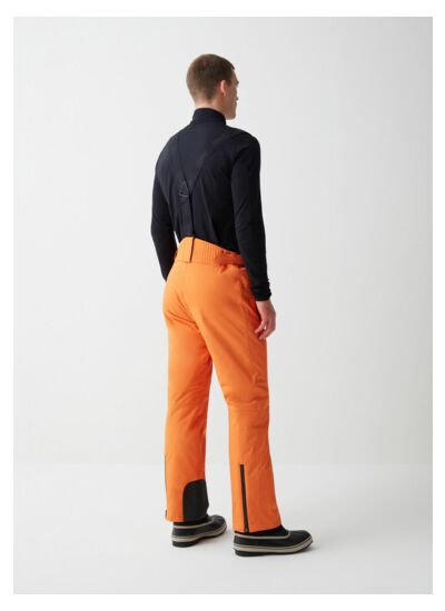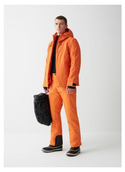 Salopette de ski pour homme réalisée en tissu stretch de polyester 100 % recyclé laminé avec une membrane imperméable résistant à la pression d'une colonne d'eau de 15 000 mm et ayant un niveau de respirabilité de 15 000 g/m²/24h, garnie de ouate stretch Clomax® Flex4way. Partiellement thermosoudée. Confort idéal garanti par la doublure douce et élasticisée pour un vêtement technique, extrêmement pratique et à la ligne slim.