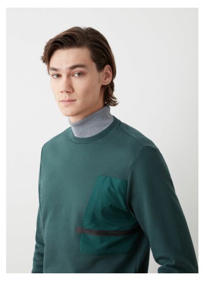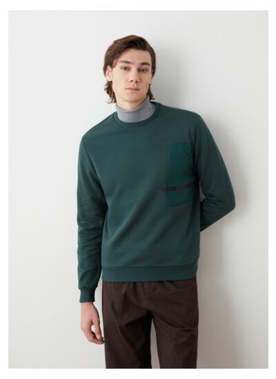 Sweat pour homme, réalisé en tissu 100 % coton lainé. Modèle classique à col rond caractérisé par une application sur la poitrine en tissu technique. La signature appliquée sur la poche avec un effet brillant/mat sublime ce vêtement en lui donnant un look contemporain. Un mélange de matières qui permet différentes utilisations.