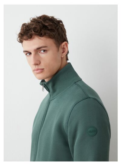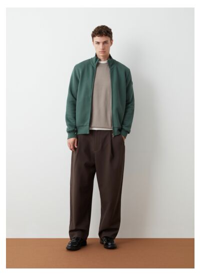 Sweat-shirt pour homme zippé pleine longueur, réalisé en tissu lainé de coton mélangé. Le tissage en diagonale du tissu de base, les coutures évidentes sur les épaules, les emmanchures et les poignets, donnent du caractère à ce modèle confortable et pratique. Une grande personnalité caractérise ce vêtement fonctionnel à associer avec un pantalon de survêtement pour créer un look sportif ou avec l'un des pantalons de la collection pour un look urbain.
