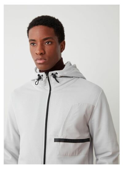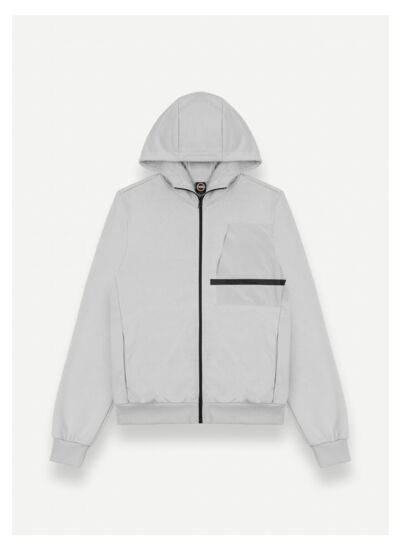 Sweat-shirt pour homme avec zip pleine longueur et capuche en tissu 100 % coton lainé. La décoration en tissu technique sur la poitrine caractérise ce modèle. La signature avec un effet brillant/mat appliquée sur la poche sublime ce vêtement à l'âme sportive et urbaine. Le bon mélange de styles qui permet différentes combinaisons et utilisations.