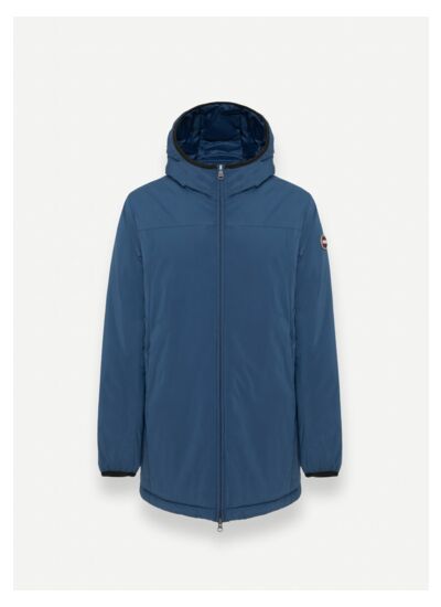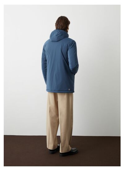 Veste pour homme mi-longue avec capuche fixe réalisée en tissu stretch à l'aspect mat et garnie de ouate moelleuse. Un vêtement technique grâce à un traitement hydrofuge et à la membrane sur l'envers qui résiste à la pression d’une colonne d’eau de 5 000 mm. Fonctionnel et confortable, ce vêtement à zip double curseur dispose d'une poche intérieure pratique fermée par un zip. La capuche et les poignets présentent un galon élastique en contraste de couleur. Le pratique cordon de serrage dans le bas permet d'en ajuster la largeur. Look urbain pour affronter les premiers froids.