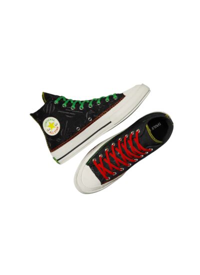 Inspirées des modèles originaux des années 70, ces Chuck 70 montantes revisitent le classique Converse avec une toile noire profonde, des détails Egret subtils et une touche multicolore qui dynamise chaque tenue. Leur silhouette élancée et leur finition soignée apportent une élégance décontractée, idéale pour les femmes et les hommes qui veulent se démarquer sans effort.