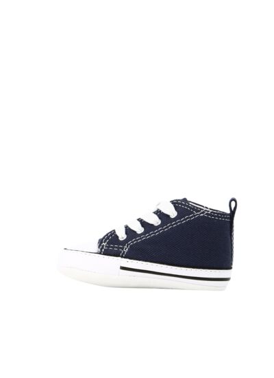 Tige en toile bleu, fermeture lacets, semelle extérieure en caoutchouc vulcanisé, logo Converse First Star sur le côté. Disponible en plusieurs pointures enfant.