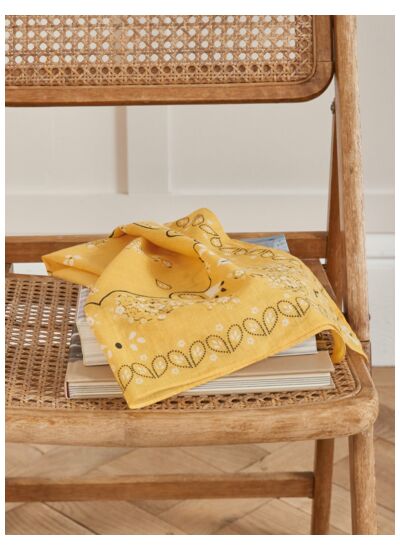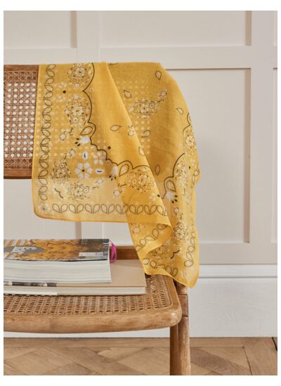 Confectionné par Cyrillus, ce bandana fleurs s’impose comme un incontournable de la saison. Sa texture douce et légère s’adapte parfaitement à toutes vos envies : noué autour du cou, en headband ou attaché à un sac, il révèle une féminité subtile et naturelle. Son imprimé floral, finement travaillé, apporte fraîcheur et modernité à vos looks, du plus casual au plus sophistiqué.