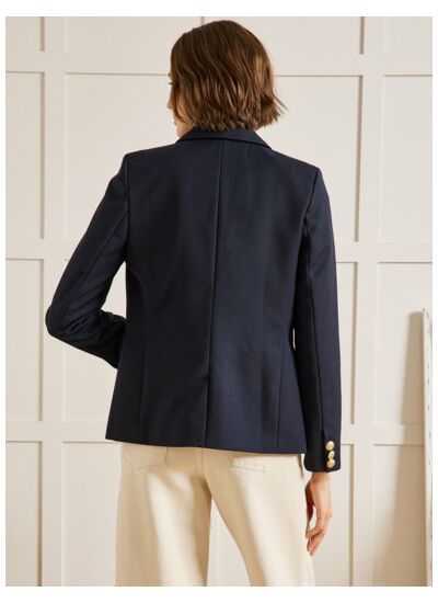 Confection : tissu principal 100% polyester. Coupe cintrée avec fermeture à boutons. Col cranté classique. Poches latérales discrètes. Doublure intérieure pour un confort optimal.
