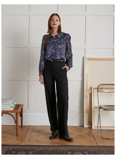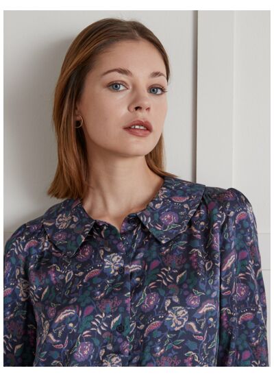 Blouse 100% coton, col classique imprimé, manches longues avec poignets boutonnés, fermeture par boutons discrets sur le devant. Entretien facile en machine.