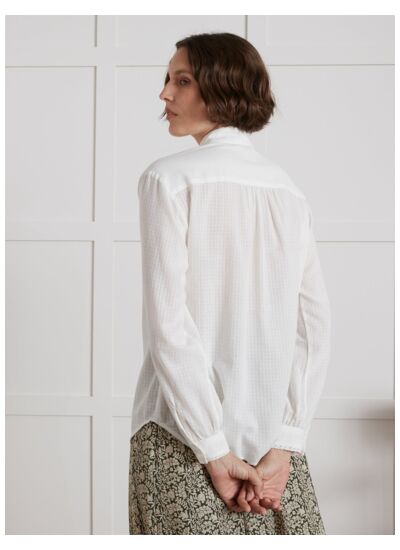 Confectionnée dans un tissu ripstop léger, cette blouse allie résistance et confort. Sa coupe fluide met en valeur la silhouette sans contrainte, tandis que le galon apporte une touche subtile de sophistication. Facile à associer, elle se porte aussi bien avec un pantalon tailleur qu’un jean casual.