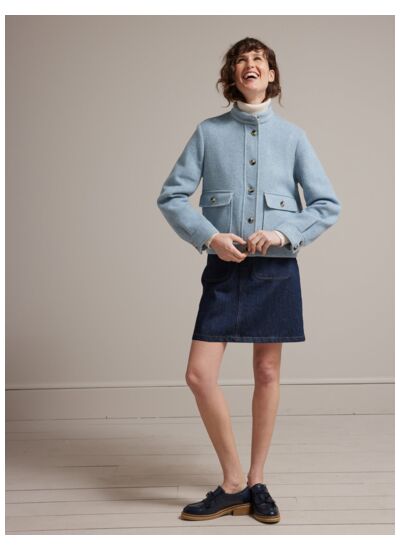Réponse : La coupe est étudiée pour être légèrement cintrée, valorisant la silhouette sans être restrictive.