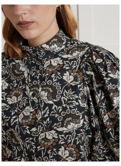 Fabriquée par Cyrillus, cette blouse est proposée dans une qualité de tissu soigneusement sélectionnée pour sa tenue et sa douceur. Elle se ferme par des boutons discrets et présente une coupe légèrement ample pour un tombé impeccable.