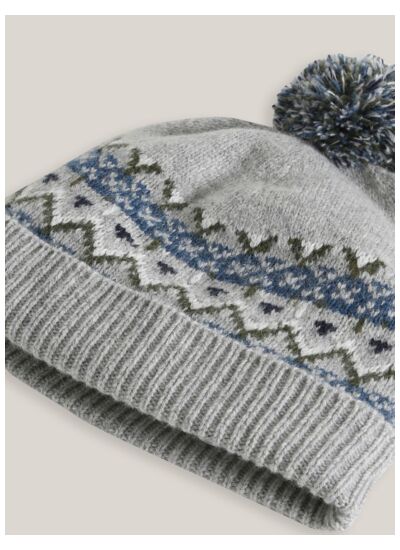 Réponse : Le bonnet est en maille jacquard, mélange de fibres sélectionnées pour chaleur et douceur.