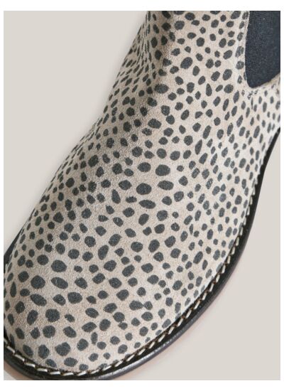 Fabriquées en cuir imprimé léopard, doublure textile, semelle extérieure en caoutchouc antidérapant. Fermeture par zip latéral pour un enfilage rapide. Disponibles du 24 au 38.
