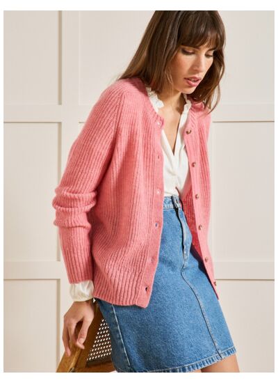 Confectionné dans une maille côtelée douce et résistante, ce cardigan offre une silhouette structurée tout en restant confortable. Son coloris sobre et ses détails minimalistes s’adaptent aisément à toutes vos associations, du jean casual à la jupe plus sophistiquée. Léger mais chaud, il accompagne vos transitions saisonnières avec style.
