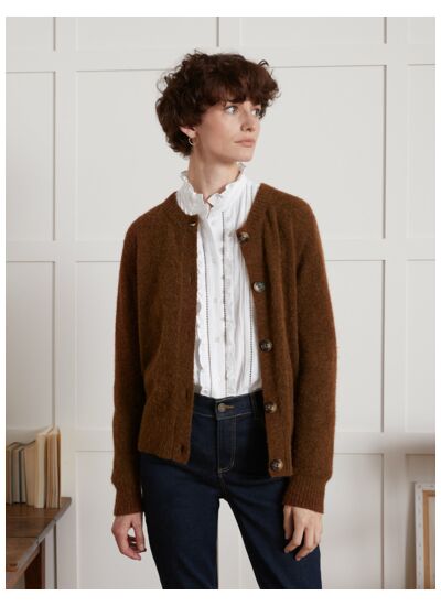Réponse : Ce cardigan est confectionné en laine alpaga, reconnue pour sa douceur et sa chaleur naturelle.