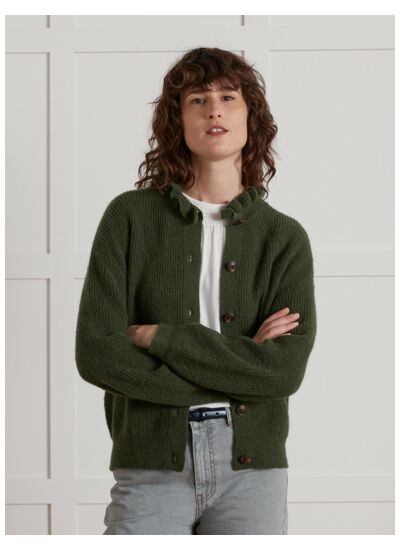 Ce cardigan vous enveloppe de chaleur légère sans alourdir, idéal pour les journées changeantes. Sa matière respirante garantit un confort optimal tandis que les volants ajoutent du mouvement et de la féminité à chaque geste.