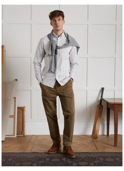 Fabriquée en tissu oxford, cette chemise présente une texture légèrement grainée, gage de robustesse et d’élégance. Elle est dotée d’un col classique et de boutons assortis, pour un rendu net et harmonieux.