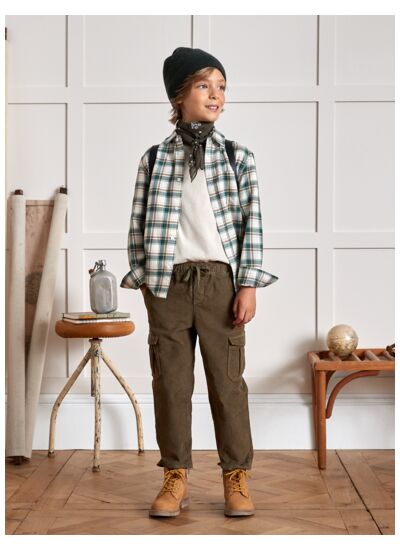 Fabriquée en coton de qualité, la CHEMISE CARO VERT FLAN présente un col classique, des manches longues avec poignets boutonnés et un motif à carreaux verts qui s’intègre facilement à toute garde-robe enfantine.