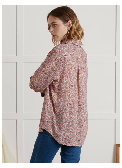 Confectionnée dans une matière légère et fluide, cette chemise offre une liberté de mouvement idéale pour une journée active ou une soirée décontractée. Sa coupe ample crée un équilibre parfait entre modernité et sophistication, facile à associer avec un jean ou un pantalon tailleur. Le col classique et les manches longues apportent une touche intemporelle qui traverse les saisons.
