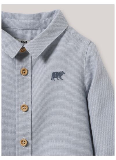 Fabriquée en flanelle de coton, elle présente une fermeture boutonnée sur le devant, un col classique et des manches longues avec poignets ajustés. Disponible en plusieurs tailles adaptées à la morphologie des bébés.