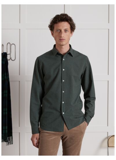 Fabriquée en coton de qualité, cette chemise présente une coupe regular, des manches longues avec poignets boutonnés et un col classique. Son entretien est simple, adapté à un usage fréquent.