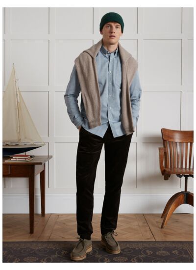 Cette chemise incarne la simplicité maîtrisée avec une coupe regular qui respecte la silhouette sans la contraindre. Son tissu soigneusement sélectionné offre une texture agréable au toucher et une tenue impeccable tout au long de la journée. Polyvalente, elle se porte aussi bien sous une veste que seule, pour un look naturel et soigné.