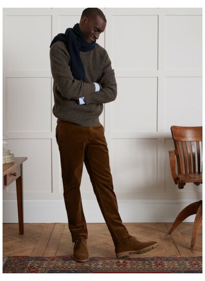 Le chino velours Cyrillus réinvente l’élégance décontractée avec une texture douce et un tombé impeccable. Un essentiel masculin qui allie confort et style pour toutes vos journées.