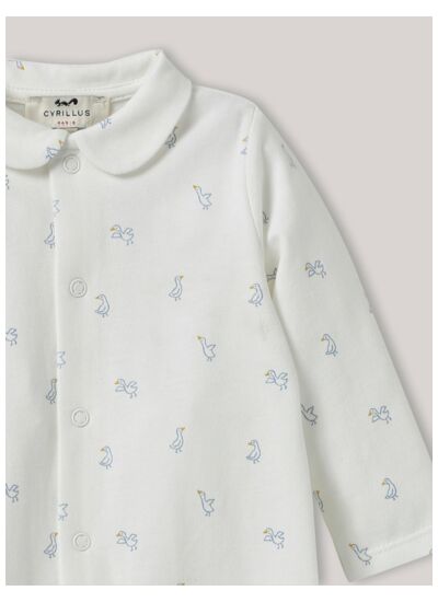 Confectionné dans un jersey imprimé all-over, ce pyjama assure une douceur exceptionnelle au contact de la peau fragile de bébé. Son design élégant et moderne, fidèle à l’esprit Cyrillus, apporte une touche de fraîcheur à la garde-robe nuit de votre enfant. Léger et respirant, il accompagne parfaitement les nuits printanières et estivales.