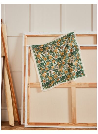 Dimensions : 70 x 70 cm. Composition : 100 % viscose. Entretien : lavage à la main recommandé pour préserver la qualité des couleurs et la douceur du tissu.
