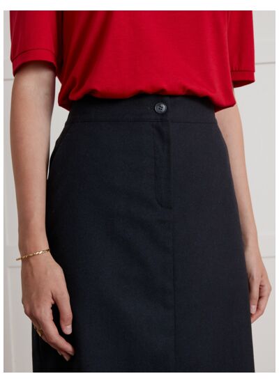 Vous bénéficiez d’une tenue confortable grâce à la douceur naturelle de la flanelle, tout en profitant d’une coupe qui structure la silhouette sans contrainte. Facile à assortir, cette jupe vous accompagne du bureau à vos sorties, en toute simplicité.