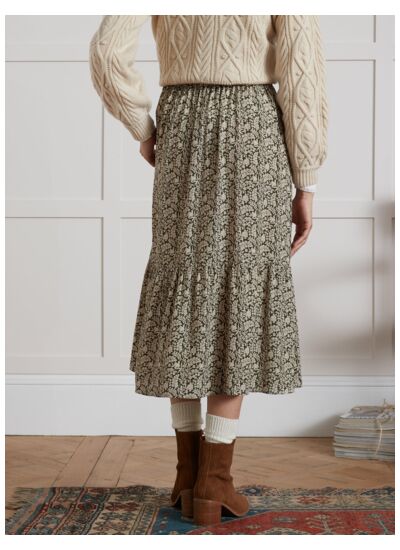 Réponse : La jupe Gladys Basq présente une longueur midi, offrant un équilibre parfait entre élégance et modernité.