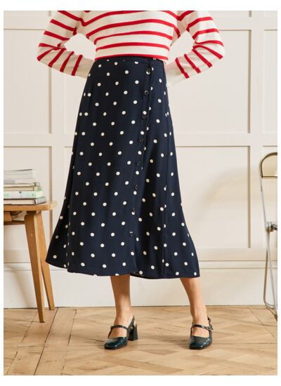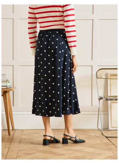Laissez-vous séduire par l’élégance intemporelle de la jupe pois en crêpe, un incontournable du dressing féminin. Son imprimé graphique et sa matière fluide apportent une touche de modernité à toutes vos tenues.