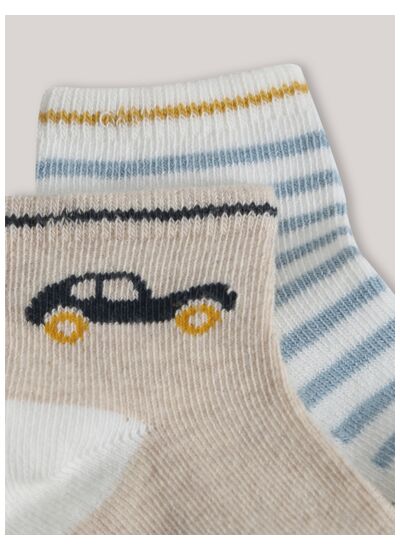 Lot comprenant plusieurs paires de chaussettes en coton doux, avec une finition en bord-côte extensible. Adaptées à la morphologie des bébés, elles sont lavables en machine et conservent leur forme et leur couleur au fil des lavages.