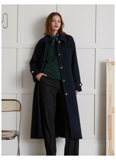 Matière principale douce et résistante, fermeture par boutons discrets, ceinture amovible pour varier les styles, coupe droite légèrement cintrée, longueur idéale pour un porté polyvalent.