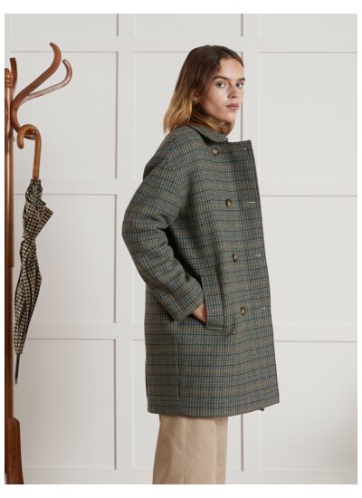 Ce manteau se distingue par sa fermeture boutonnée discrète, ses poches latérales pratiques et sa doublure intérieure douce. Disponible dans des coloris sobres, il s’adapte facilement à votre garde-robe de saison.