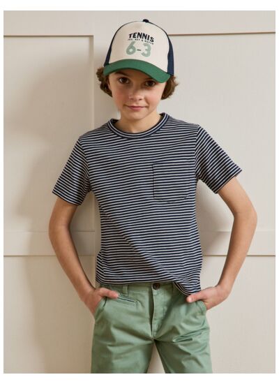 Confectionnée dans un coton doux et résistant, cette marinière à manches courtes offre une coupe ajustée qui suit les mouvements sans gêner. Son rayé intemporel bleu marine et blanc apporte une touche de fraîcheur et de caractère, idéale pour la saison printemps-été. Facile à associer, elle s’adapte aussi bien à un jean qu’à un short.