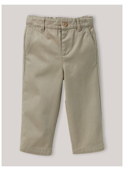Pantalon chino bébé Cyrillus, taille élastiquée, coupe ajustée, tissu doux et résistant, coloris intemporel. Lavable en machine, facile d’entretien.