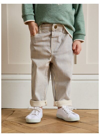 Un pantalon rayé qui allie confort et style pour accompagner les premiers pas de bébé avec élégance. La simplicité d’un design intemporel signé Cyrillus, pensé pour la saison 25E.