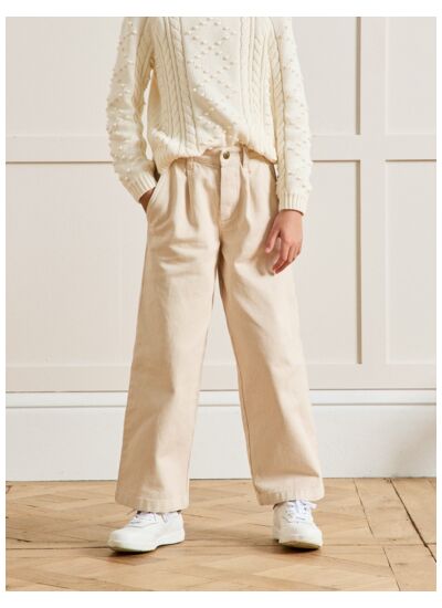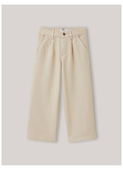 Pantalon en twill 100% coton, coupe large, taille élastiquée pour un ajustement facile, disponible dans la collection fille saison 25 par Cyrillus.