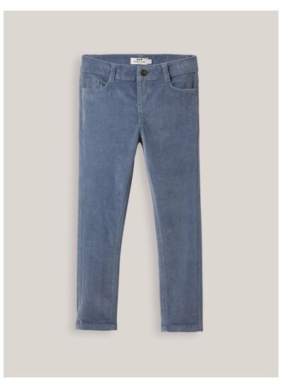 Confectionné dans un velours doux et résistant, ce pantalon épouse parfaitement la silhouette grâce à sa coupe slim. Sa texture chaleureuse et légèrement brillante apporte une touche raffinée, facile à associer avec un pull ou une blouse. Pensé pour accompagner les mouvements de votre enfant, il assure liberté et aisance tout au long de la journée.
