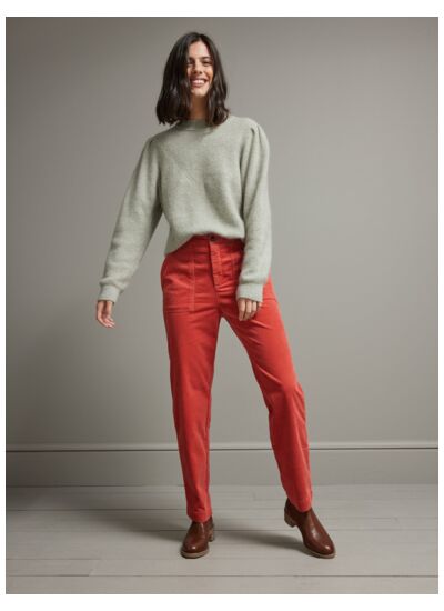 Fabriqué par Cyrillus, ce pantalon est conçu dans une matière résistante et agréable au toucher. Il présente une taille mi-haute avec fermeture zippée et bouton, des poches latérales et poches cargo sur les cuisses, ainsi qu’une finition soignée pour un rendu impeccable.