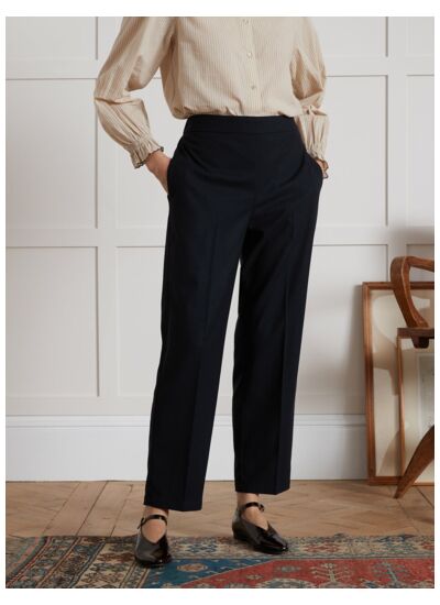 Ce pantalon signé Cyrillus se distingue par sa coupe ajustée et son tissu en laine mélangée enrichi d’élasthanne, offrant une souplesse remarquable sans compromettre la structure. Sa texture douce et légèrement stretch accompagne chaque mouvement, idéal pour une journée active ou une soirée raffinée. Son design épuré s’adapte aussi bien à un look professionnel qu’à une tenue casual chic.
