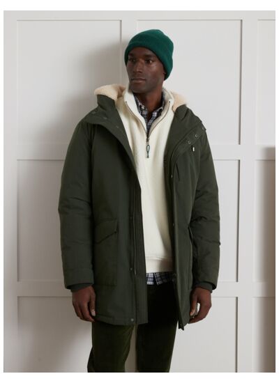 Confectionnée dans un tissu technique résistant à l’eau, cette parka dispose d’une fermeture zippée sous patte pressionnée, de poches latérales sécurisées et d’une capuche ajustable avec cordon de serrage. La doublure intérieure assure une isolation efficace tout en restant respirante.
