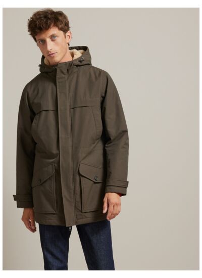 Réponse. La parka est conçue en tissu technique isolant, garantissant chaleur et résistance.