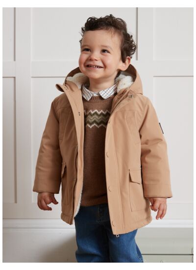 Cette parka assure une isolation optimale sans surcharger, grâce à sa doublure sherpa qui retient la chaleur corporelle. Son tissu extérieur protège efficacement contre le vent et les légères intempéries, offrant un cocon de confort à votre enfant. Facile à enfiler et à entretenir, elle simplifie le quotidien des parents tout en garantissant bien-être et liberté de mouvement au bébé.